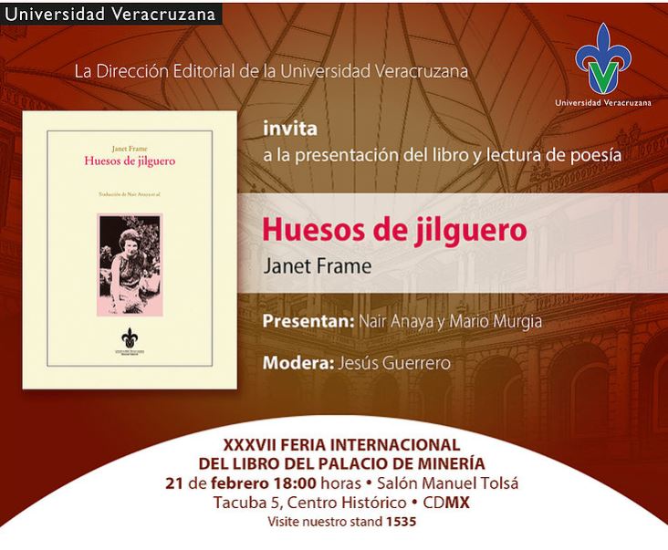The 10th Janet Frame Memorial Lecture will be delivered on Friday 16th of September 2016, at Auckland Public Library, 44-46 Lorne St, Auckland, from 5 to 6 pm.